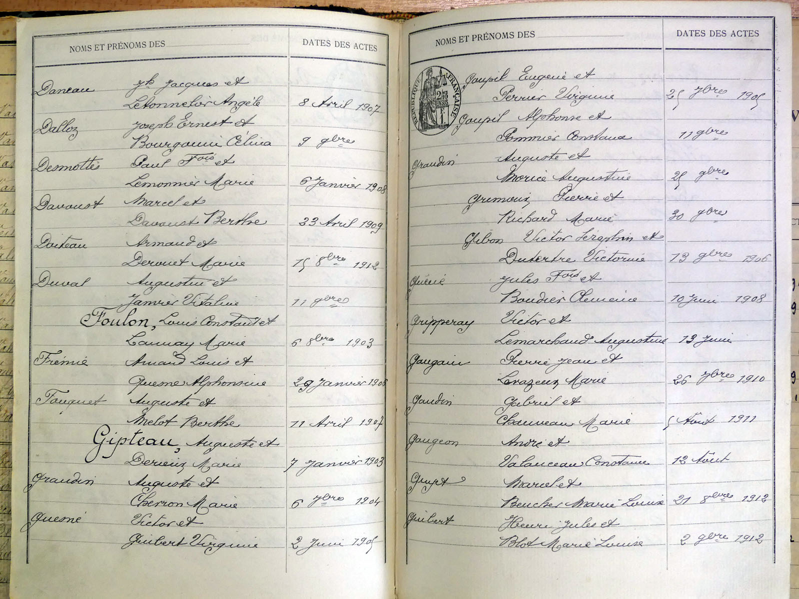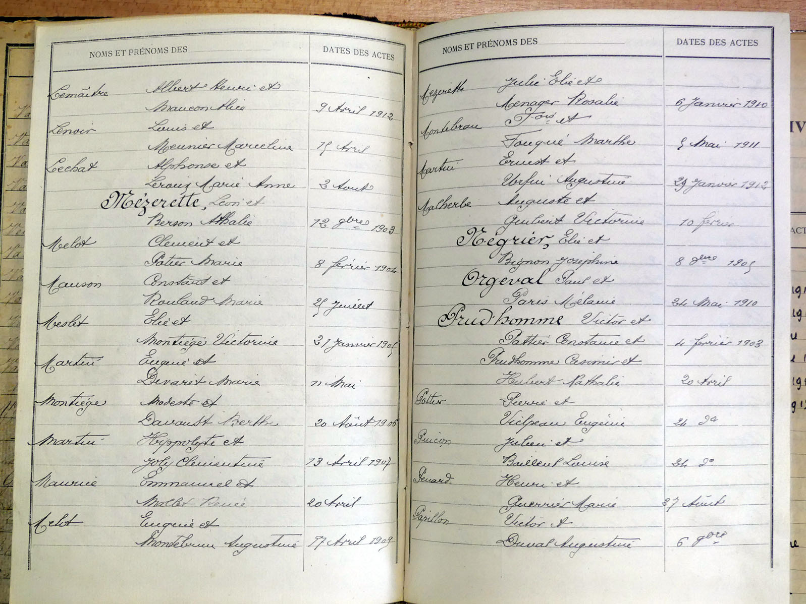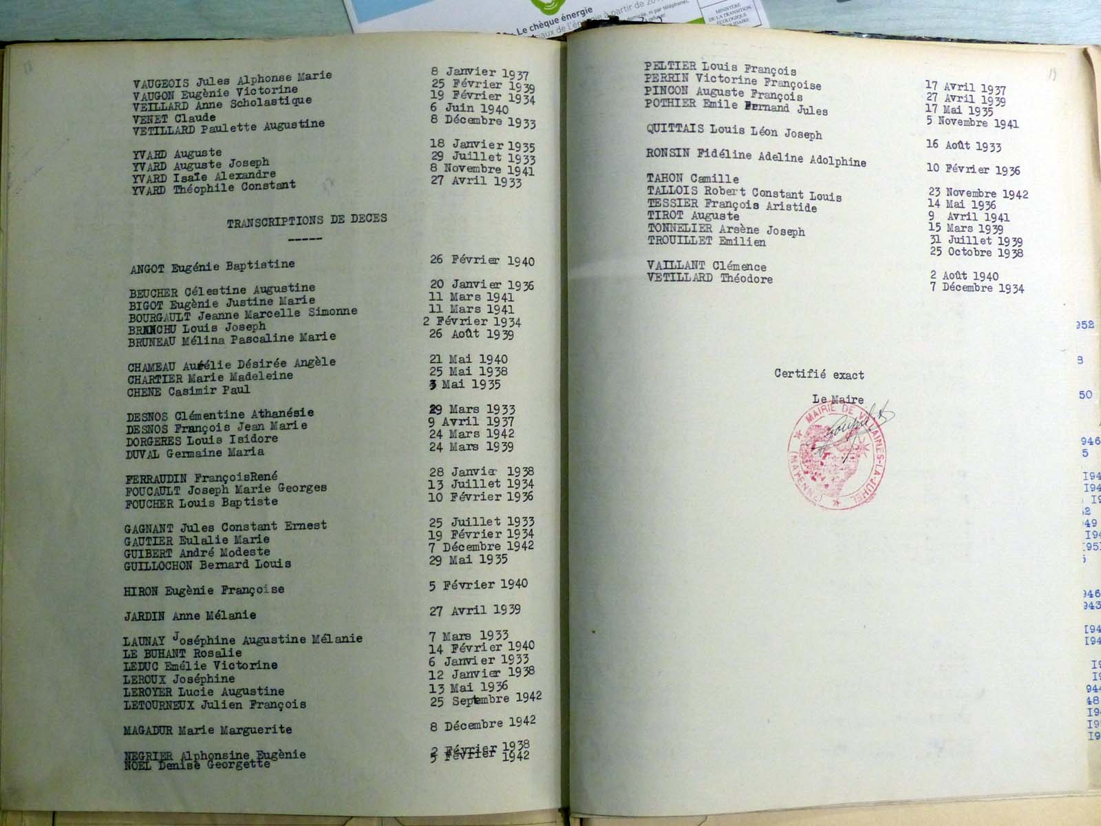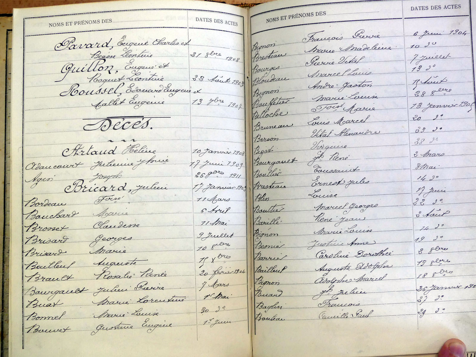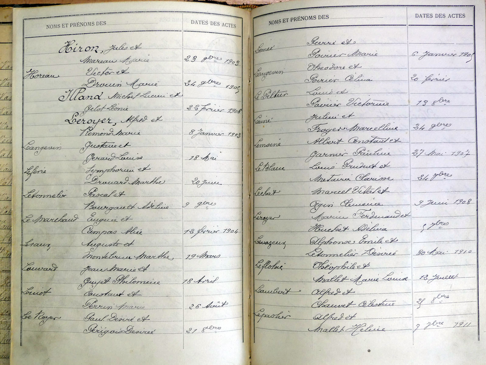 généalogiques de Villaines-la-Juhel - Tables décennales 1903 → 1942