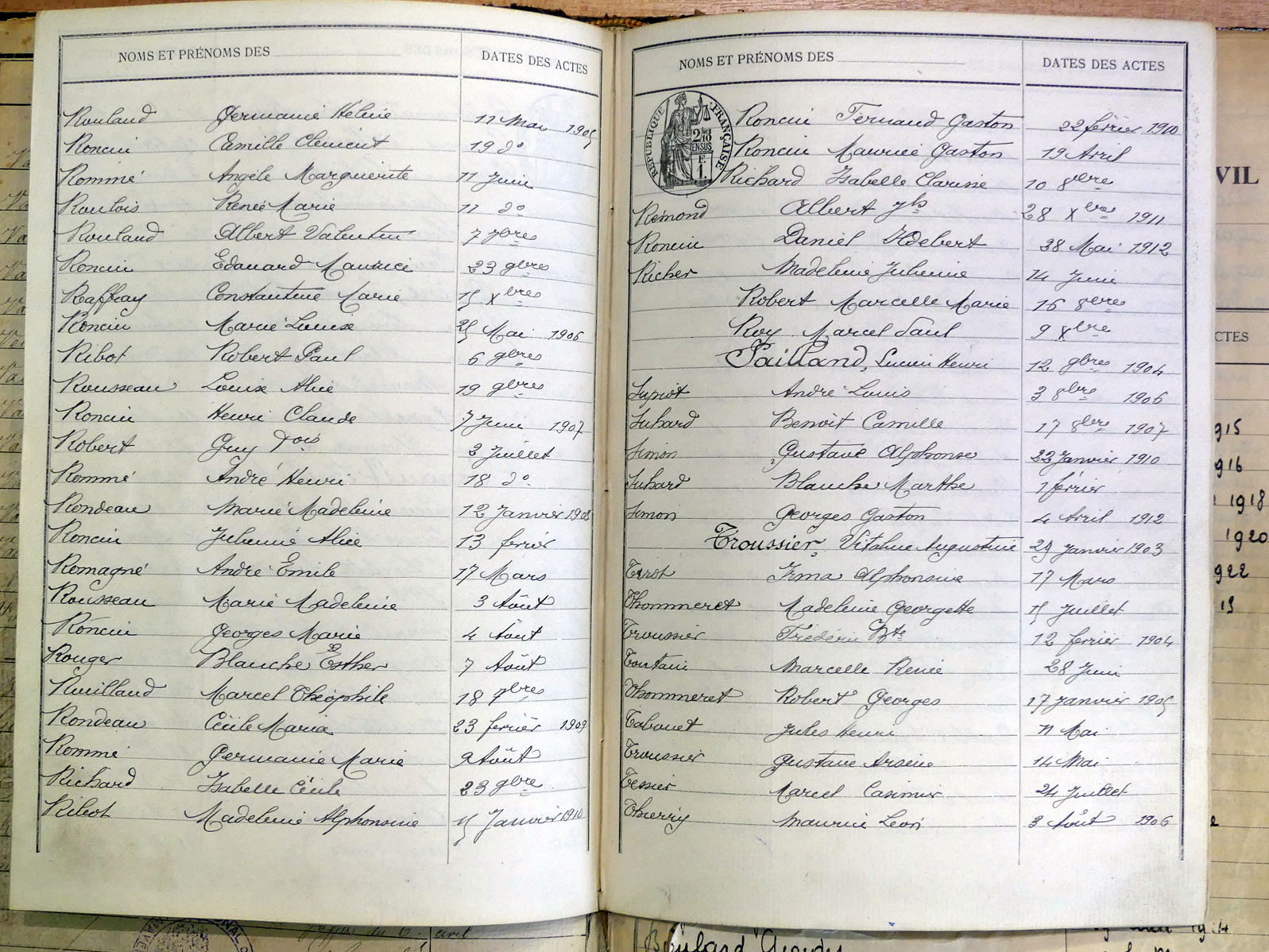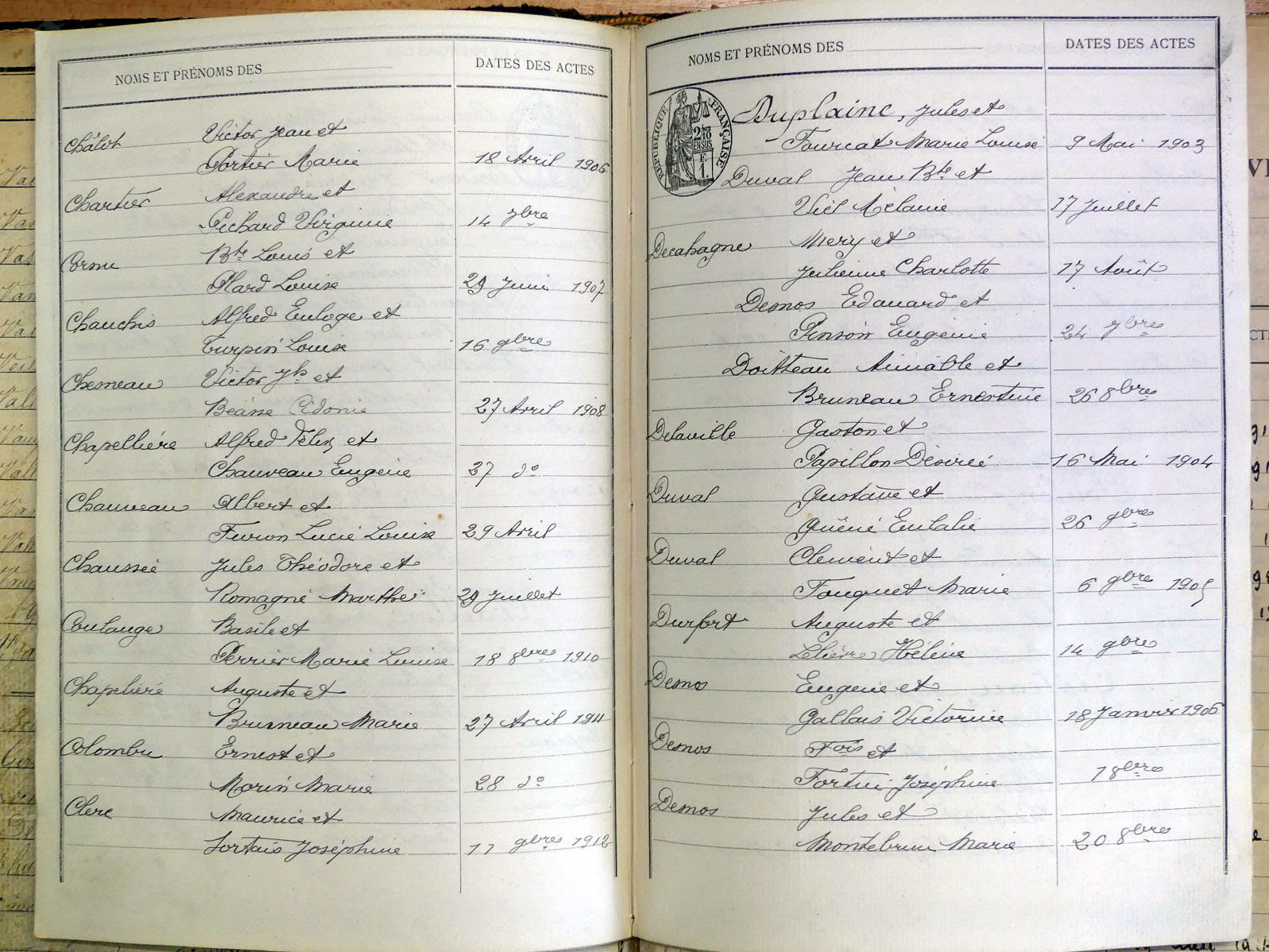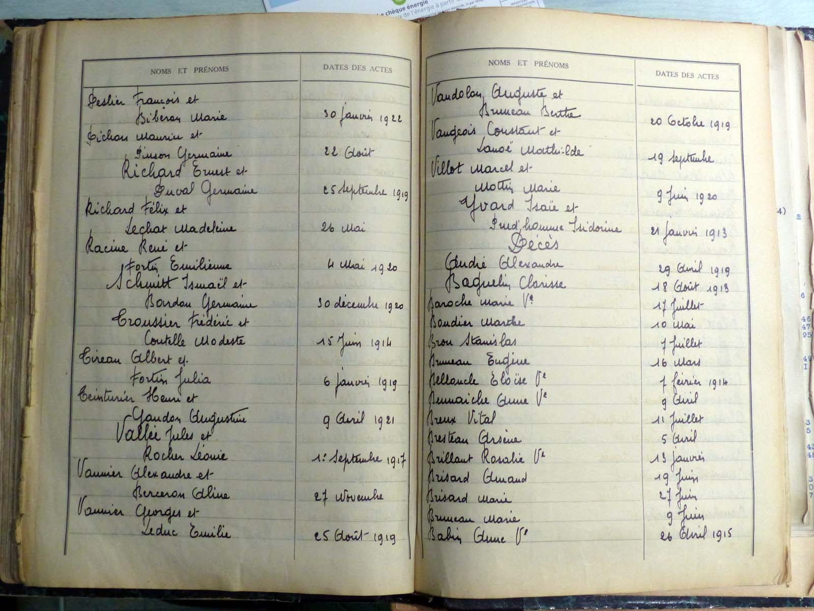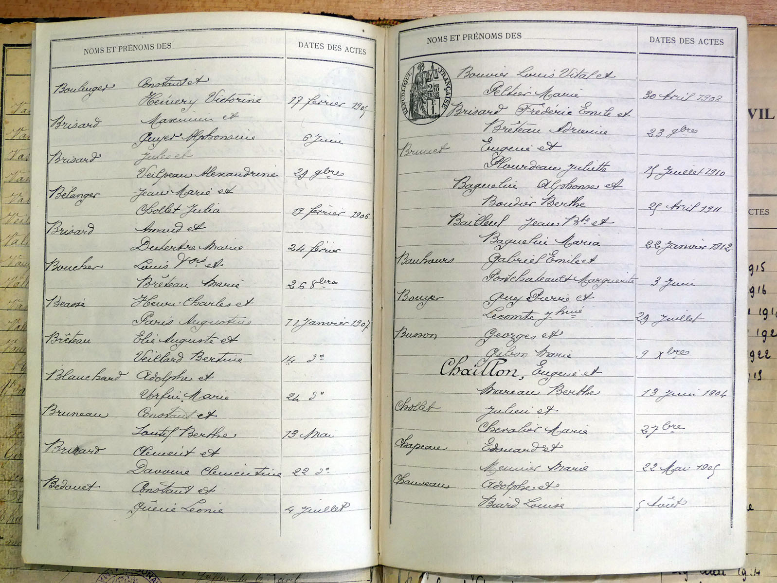 généalogiques de Villaines-la-Juhel - Tables décennales 1903 → 1942