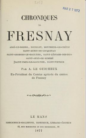 Saint-Georges-le-Gaultier faisait partie du canton de Fresnay. Une chapitre lui est consacré à partir de la page 401, mais le nom du village apparait pas moins de 100 fois pour mentionner des événements divers (qui concernent peut être encore vos ancêtres).